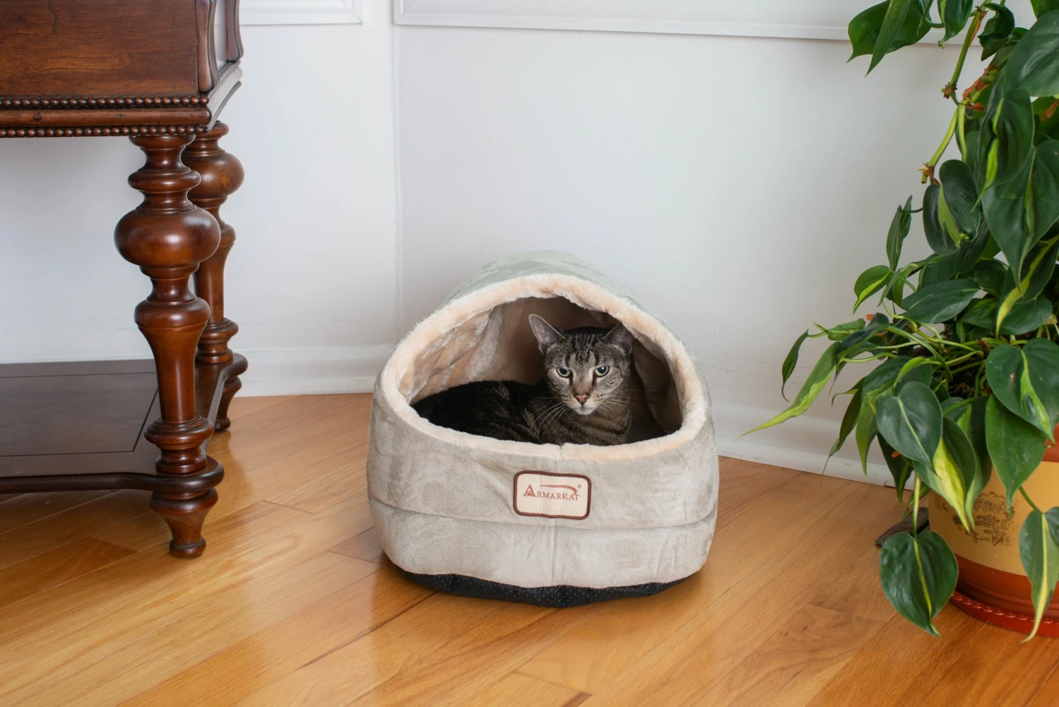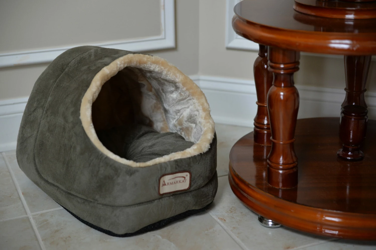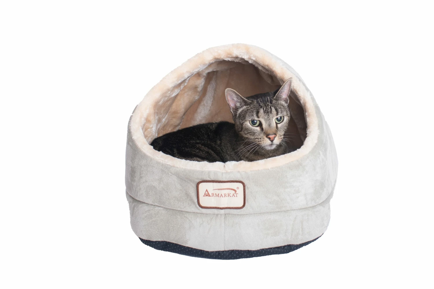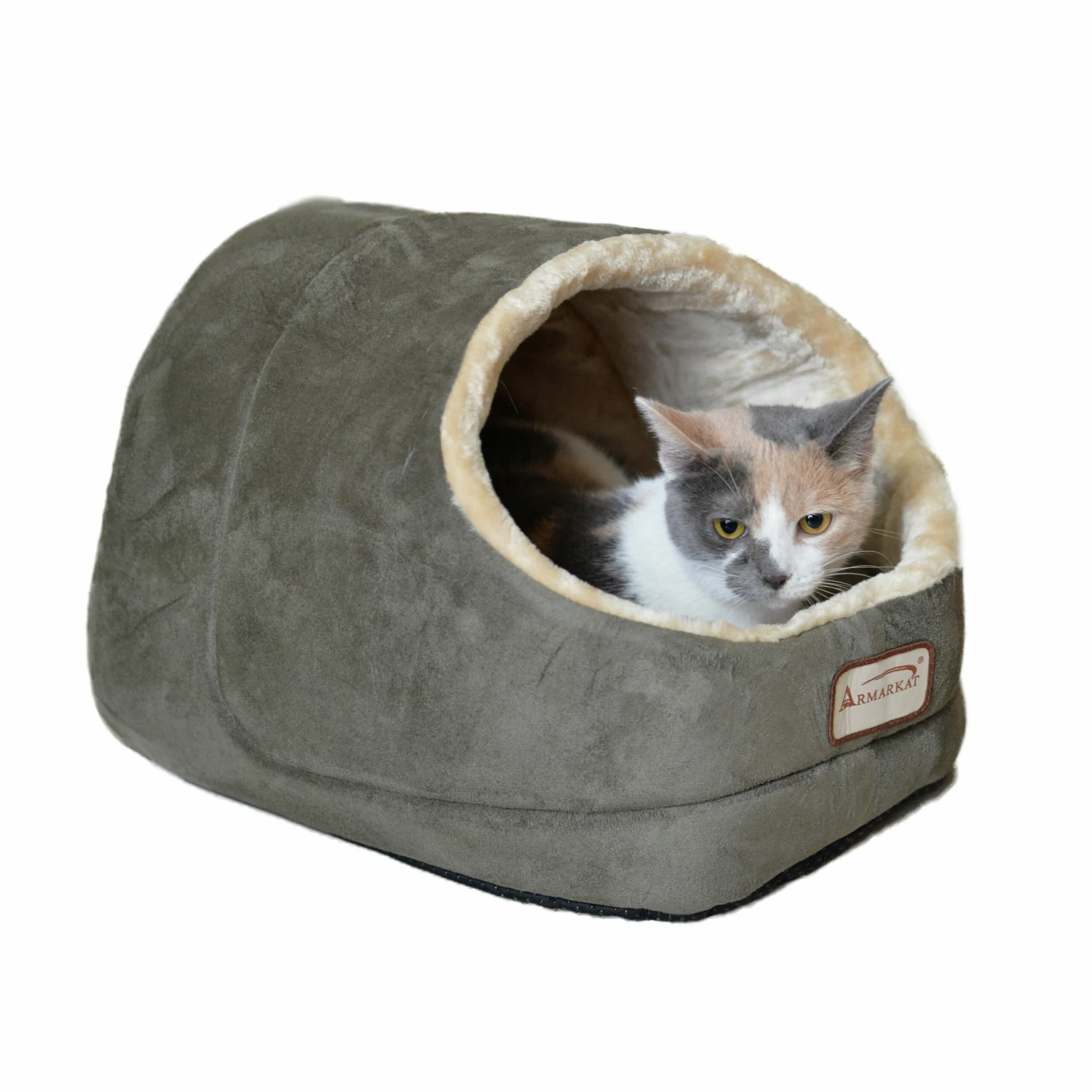 Cats and kittens can hop into nap time with Armarkatβs Model C18HHL/MH cat bed. This sage green and beige bed is filled with extra-thick, 100% polyfill for maximum comfort. Your kitties will love its buttery faux suede and faux fur. Model C18HHL has insert padding and a waterproof and skid-free base. Hand wash the pet beds, and machine wash the padding. Six months manufacturerβs warranty against defects. Dimensions: 18″(L) x 12.5″(W) x 11.5″(H)