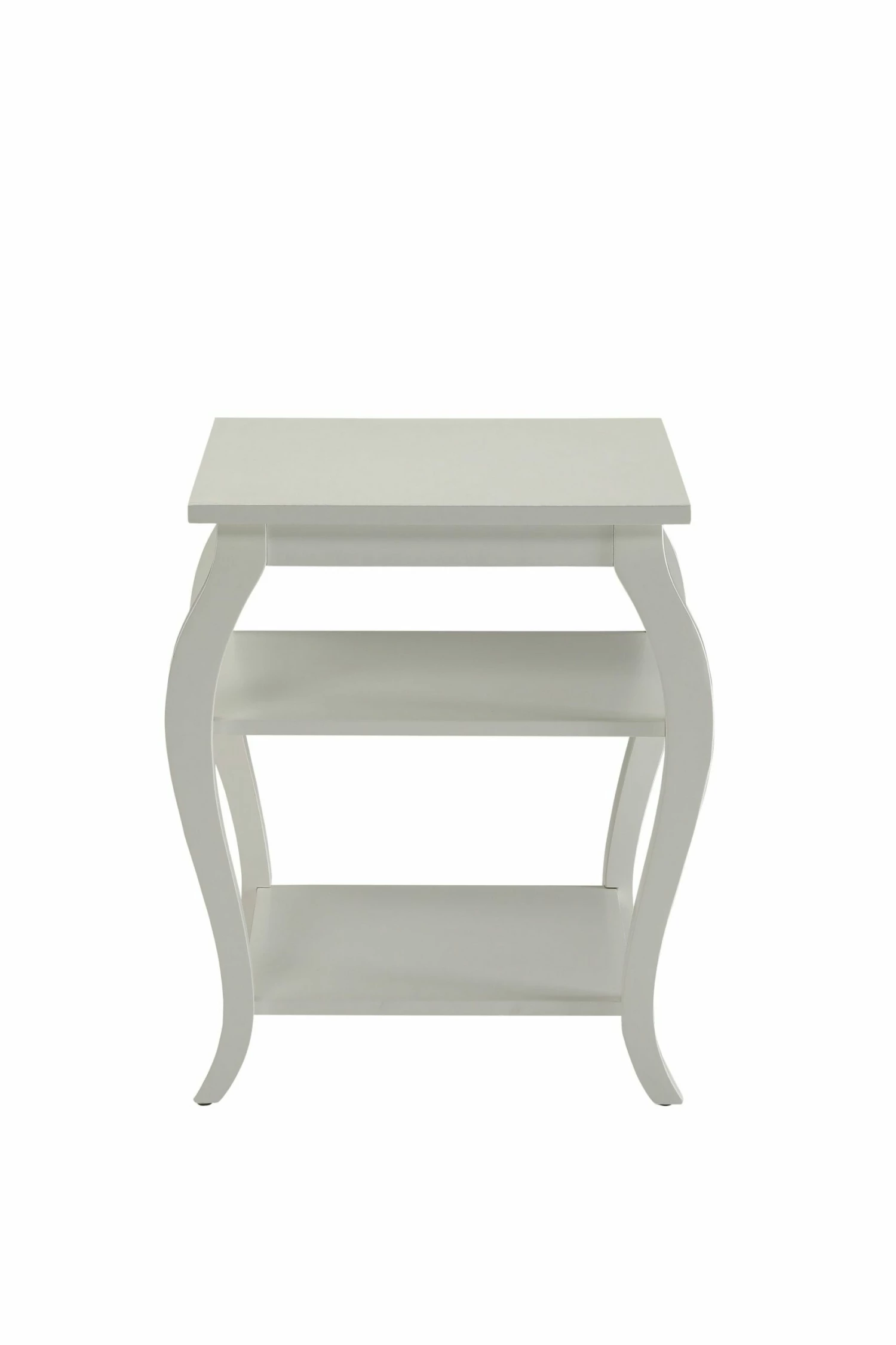 This updated modern side or end table brings a traditional touch and eclectic flair to every home setting. The chic appearance of our Bow Leg Square End or Side Table will brighten and up your room. This versatile piece works great as an end table, side table, or nightstand. Two bottom shelves add additional storage and display while the overall piece still takes up a compact footprint. Features include a square top, and stylish wooden cabriole/bowed legs. Finished all around this piece can face any direction. This accent piece will surely make a functional and inspiring design statement. 23″ X 20″ X 18″. Some assembly required.