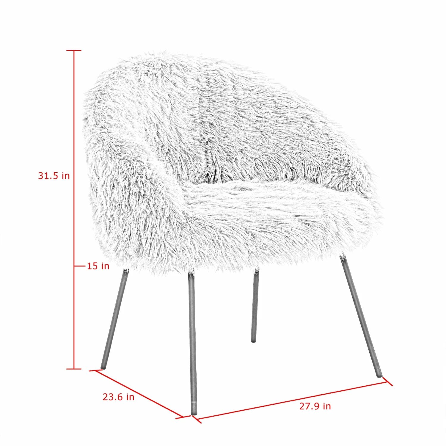 Our faux fur accent chair adds a retro and groovy touch to your living room, bedroom or entryway. Featuring adorable shag fur, the comfort of a high density foam cushioned seat, this adorable pop of color accent piece can be mixed and matched, and provides not only dual functionality but also a focal point of style and flair that seamlessly incorporates your main decor to create an inviting and comfortable atmosphere to come home to. This accent chair is ideal for a kids to dorm rooms and everything in between.