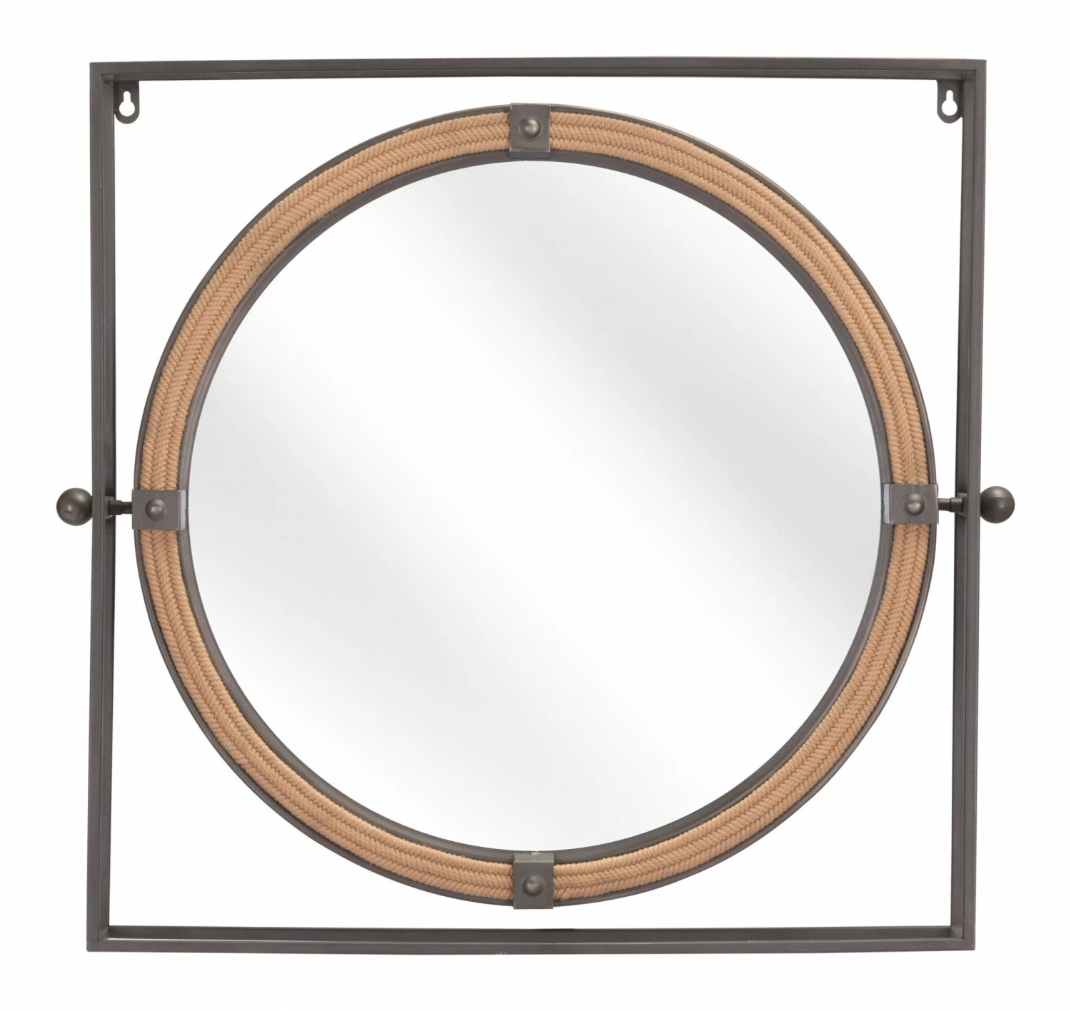 This gray metal nautical round mirror will take you back to the summer with its shape that resembles the window of a boat. The frame around the circular mirror is made from stainless steel and is finished to gray finish. There is a square frame inside of which the circular framed mirror resides. The circular frame features braided rope detail with stainless steel gray clasps on the four center points. The mirror in the middle reflects light and brings in brightness and a feeling of space in any room you use this mirror in. This mirror is great for personal use and even better as a house-warming gift for your friends and family. A hardware kit is included in the package to help in installing the mirror. Product 21.7″ H x 23.6″ W x 3.1″ D. Mirror 28″ H x 16″ W