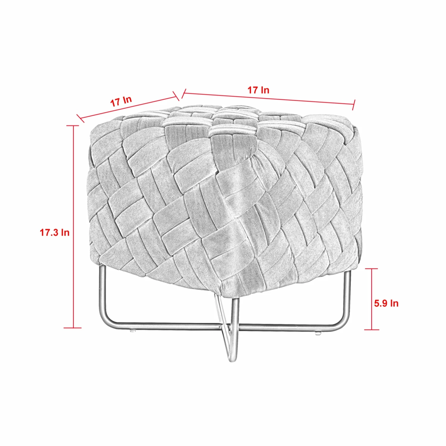 Featuring an all-over intricate basket weave design, this square ottoman is sure to boast class and style to any interior space. Constructed with sturdy yet sultry velvet fabric and high density foam to add plushness and luxury, this piece also features a sleek matte metal base to add sophistication and edge to your home. This ottoman can stand alone or be styled as a pair for additional seating. It is also available in multiple color options to blend in or stand out effortlessly in any room.