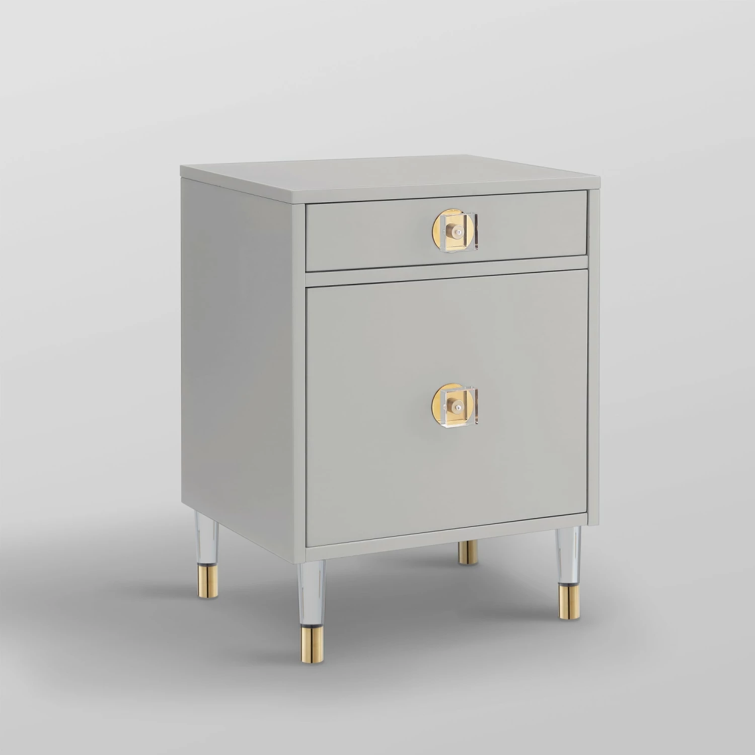 Our side table infuses an exquisite accent to your main furniture to create that modern cozy atmosphere in your home. Crafted from durable eco-friendly MDF in a sleek high gloss finish with acrylic leg and knob, this elegant 1 drawer 1 door piece is ideal as an end table in your living room or a nightstand in your bedroom. Spacious ample storage is perfect for stashing and organizing books, magazines, accessories and other living essentials safely out of sight. This item requires assembly upon delivery.