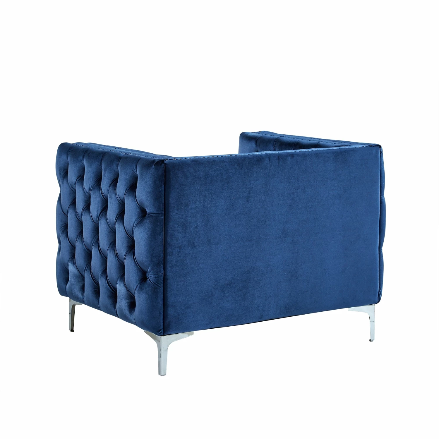 Our velvet club chair adds a gentle sophistication in the confines of your living room, bedroom or entryway. Featuring rich buttery soft velvet and button tufting with decorative silver nail head trim. This elegant accent piece provides both functionality and a focal point of color and style that seamlessly blend with your main furniture to create a dynamic and cozy interior space to come home to.