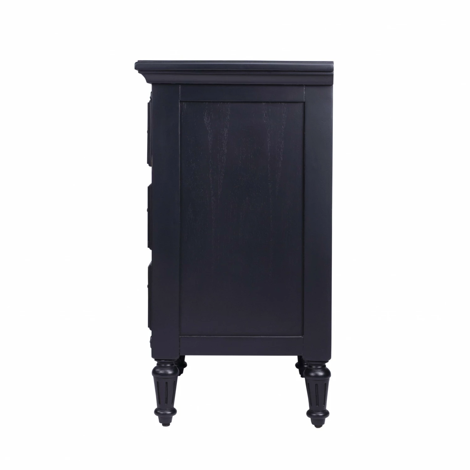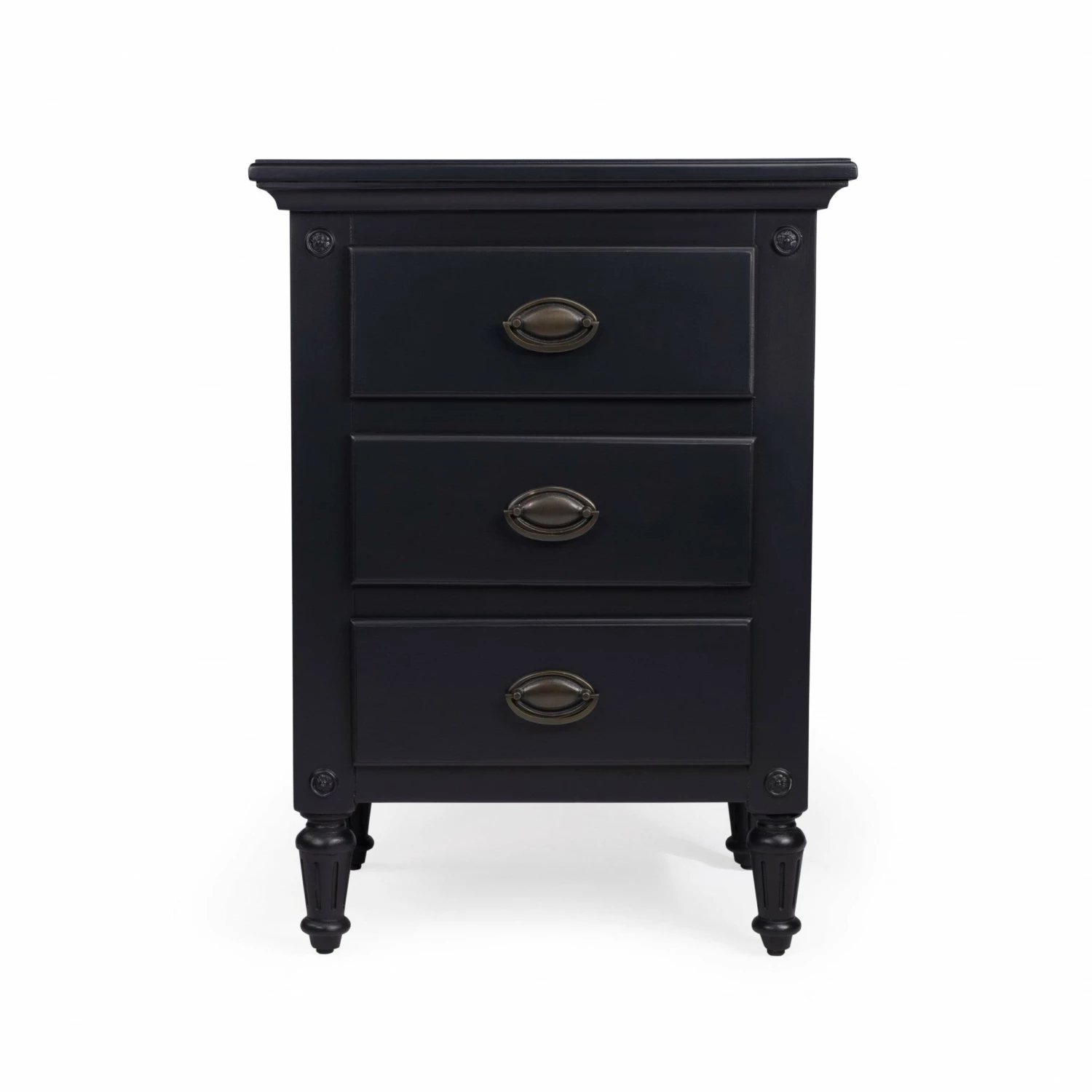 Vintage in style and compact in size,the Mahongany Black Night Stand is overall an attractive piece. Equipped with three fully extendable drawers with oval brass cabinet pull handles, it serves as the perfect companion to your bed. Crafted from various woods and mahogany veneer, it is fixed atop four arrow head carved legs providing the perfect balance and support. White resin polish along with the four embellished flower motifs on all four corners of the stand add to it’s glamourous presence. The rectangular wooden top also serves as a table to store your bedroom essentials. 29″ x 21.5″ x 16″