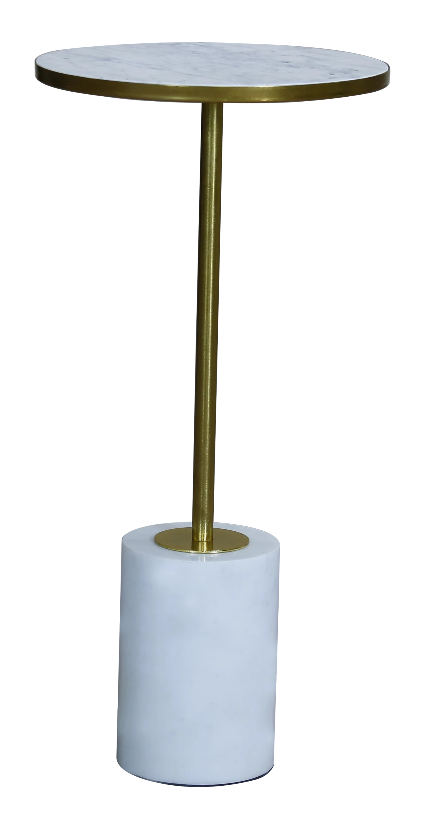 Marble and iron come together to form this unique drink table! With a round top and cylindrical base, different shapes put together to make this table stand out. The genuine white marble top and base, provide a contrast to the iron support making this a eye-catcher. The iron wraps around the marble top, giving a black accent trim. The cylindrical marble base has a rubber padding at the bottom ensuring scratch free floors! Use this for your next big party or place it in your home bar so your drink can rest in style!
