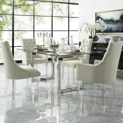 Discount π INSPIREDHOME CO Linen Button Tufted Armless Acrylic Leg Set of 2 Dining Chairs β
