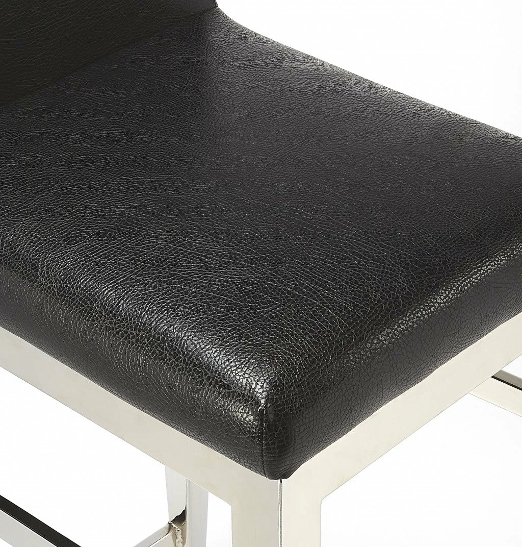 Simple, yet classy the Stainless Steel and Black Faux Leather Counter Stool is creatively designed. Contemporary in style it is best suited to dazzle in your living room or even the luxurious kitchen island. Perfect black faux leather has been upholstered on four stainless steel tapering legs to create this perfect structure. There’s also a mini backrest for added support and the steel footrest helps to steer clear of nasty shoe scratches. 31.5″ x 15″ x 17.25″