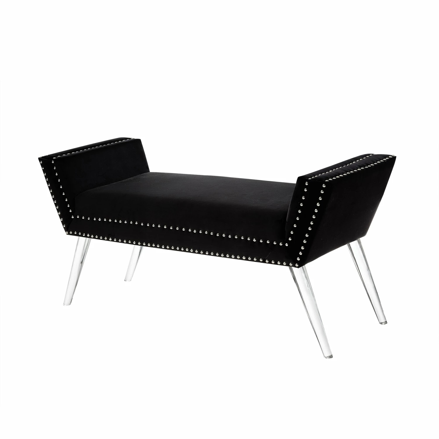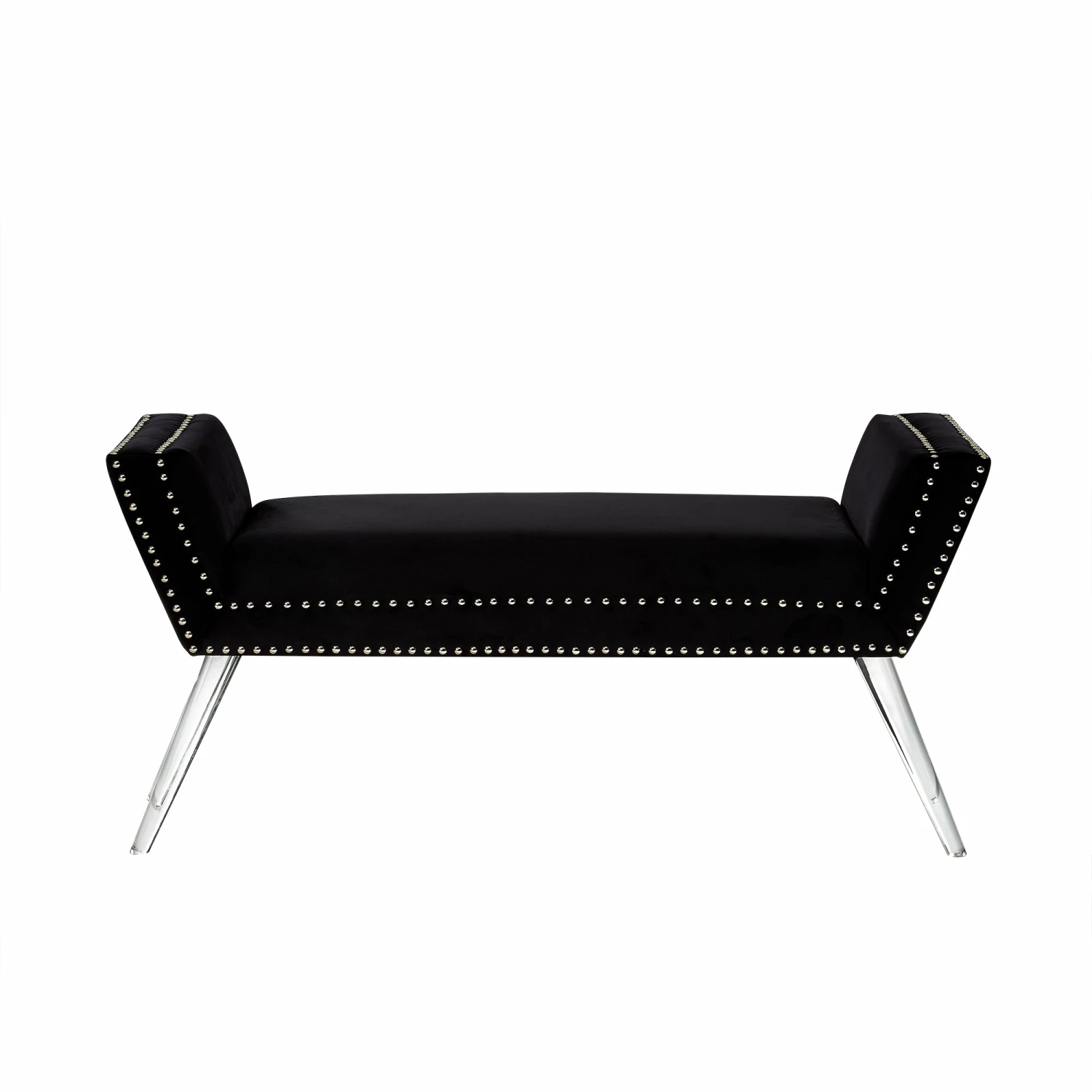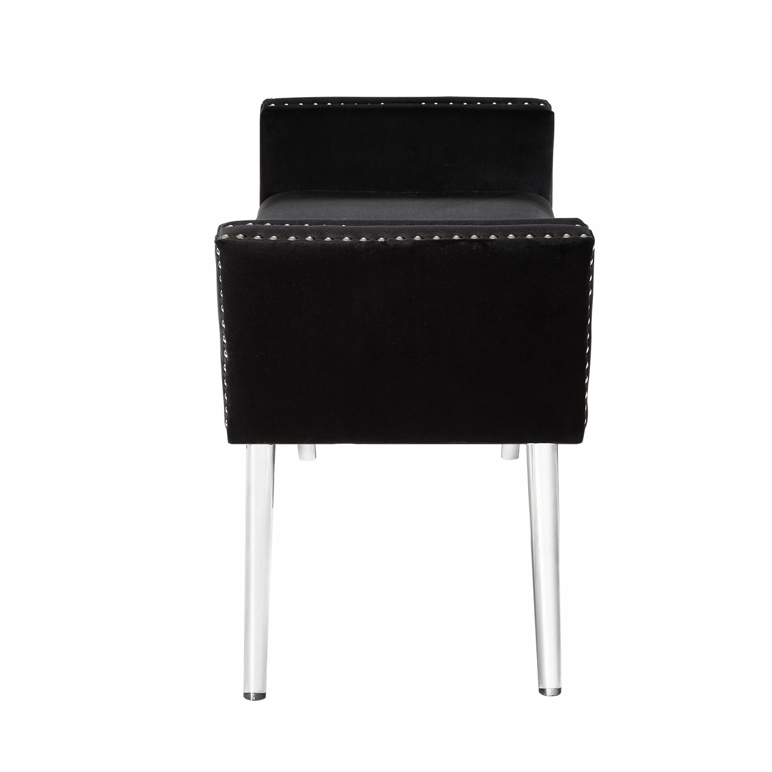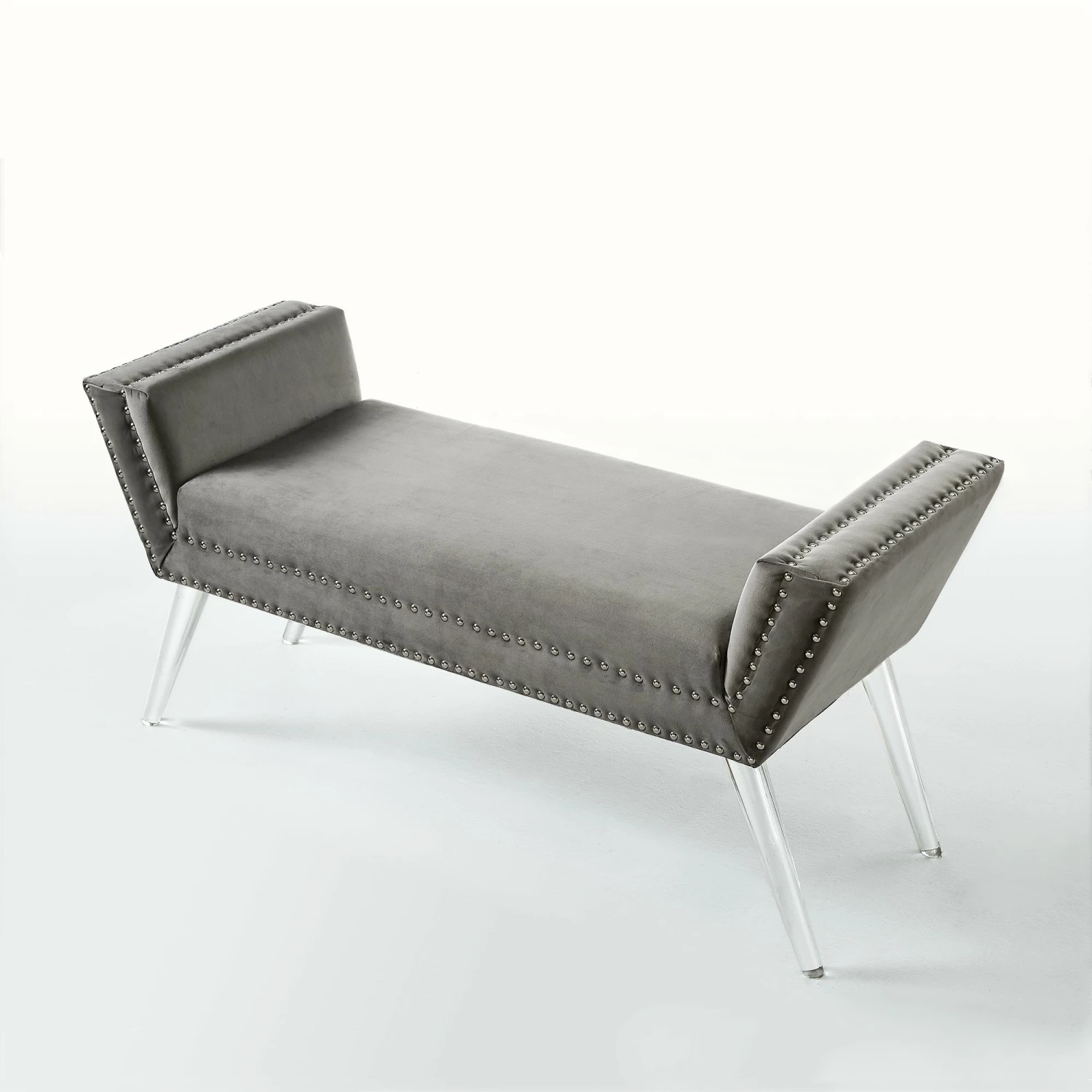 Our acrylic leg bench adds a gentle sophistication in the confines of your living room, bedroom or entryway. Featuring high density foam cushioned seat and silver decorative nail head trim with clear acrylic legs. This elegant accent piece provides both functionality and a focal point of color and style that seamlessly blend with your main furniture to create a dynamic and cozy interior space to come home to.