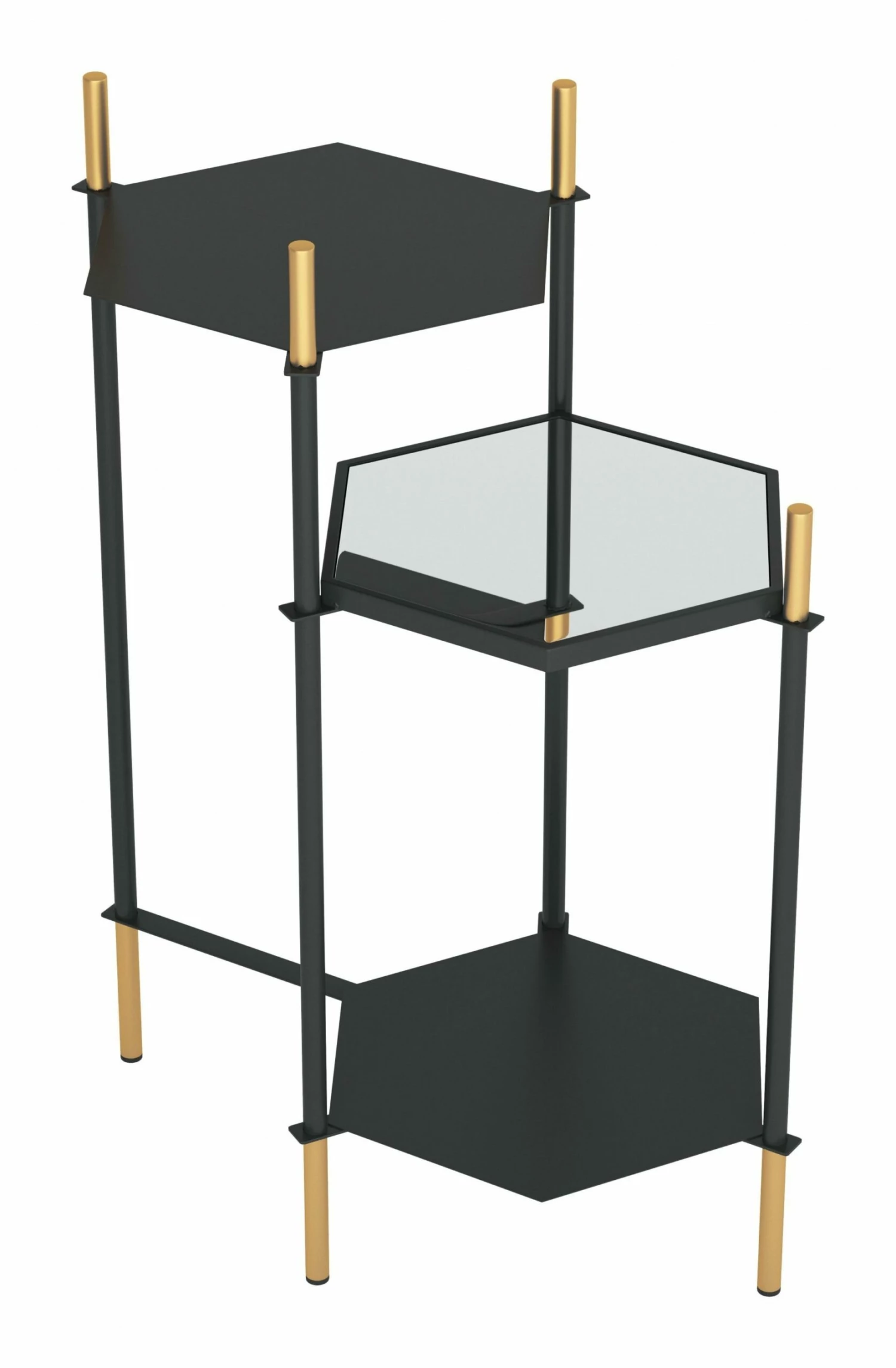 Dress up any space and give it a modern direction with the Modern 3 Level Black and gold Accent or Side Table. The contrast of the black and gold is striking while the hexagonal shape multi level shelves allow for good looking storage or display in a compact silhouette. You basically get serving and storing capabilities of three tables in one! We also love the combination of solid black and clear that adds even more dimension and interest to this versatile piece. 19.9″ x 12″ x 27.4″.